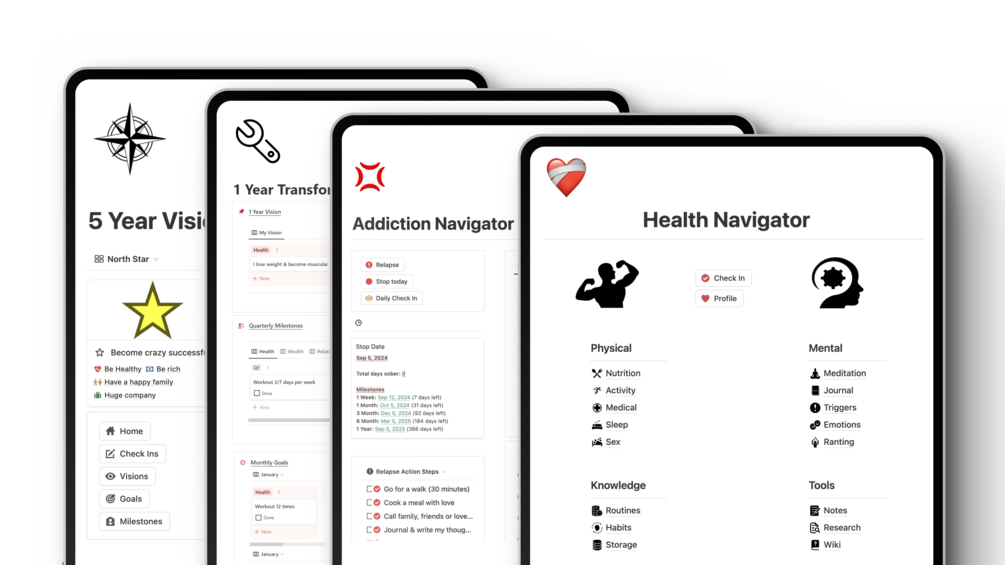 With the Health Bundle you'll get access to 4x health templates with over 50+ pages and resources that will help you develop healthy habits and live a more fulfilling life.