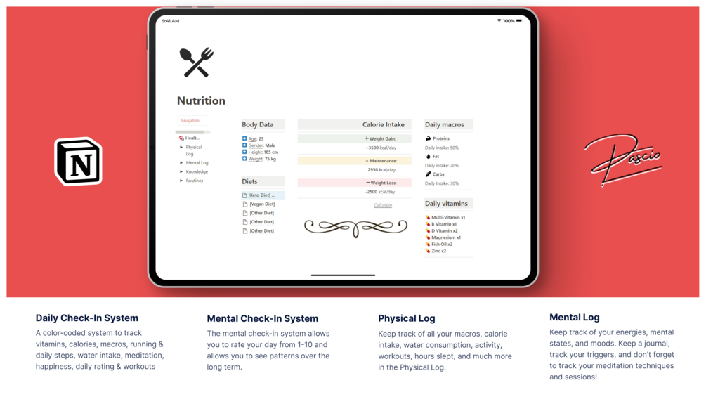 All-in-one health management, tracking and organizing system for Notion designed to supercharge your mental and physical health using the power of a digital Health operating system.