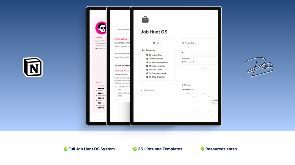 With the Job Hunt Bundle you'll get access to the Job Hunt OS along with 25+ Notion resume templates to help you secure your next interview.