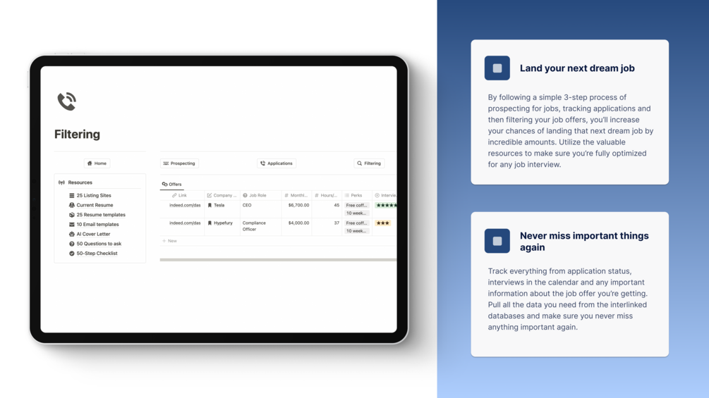Job Navigator is a Notion template built to help you land your dream job easier and faster than ever before.