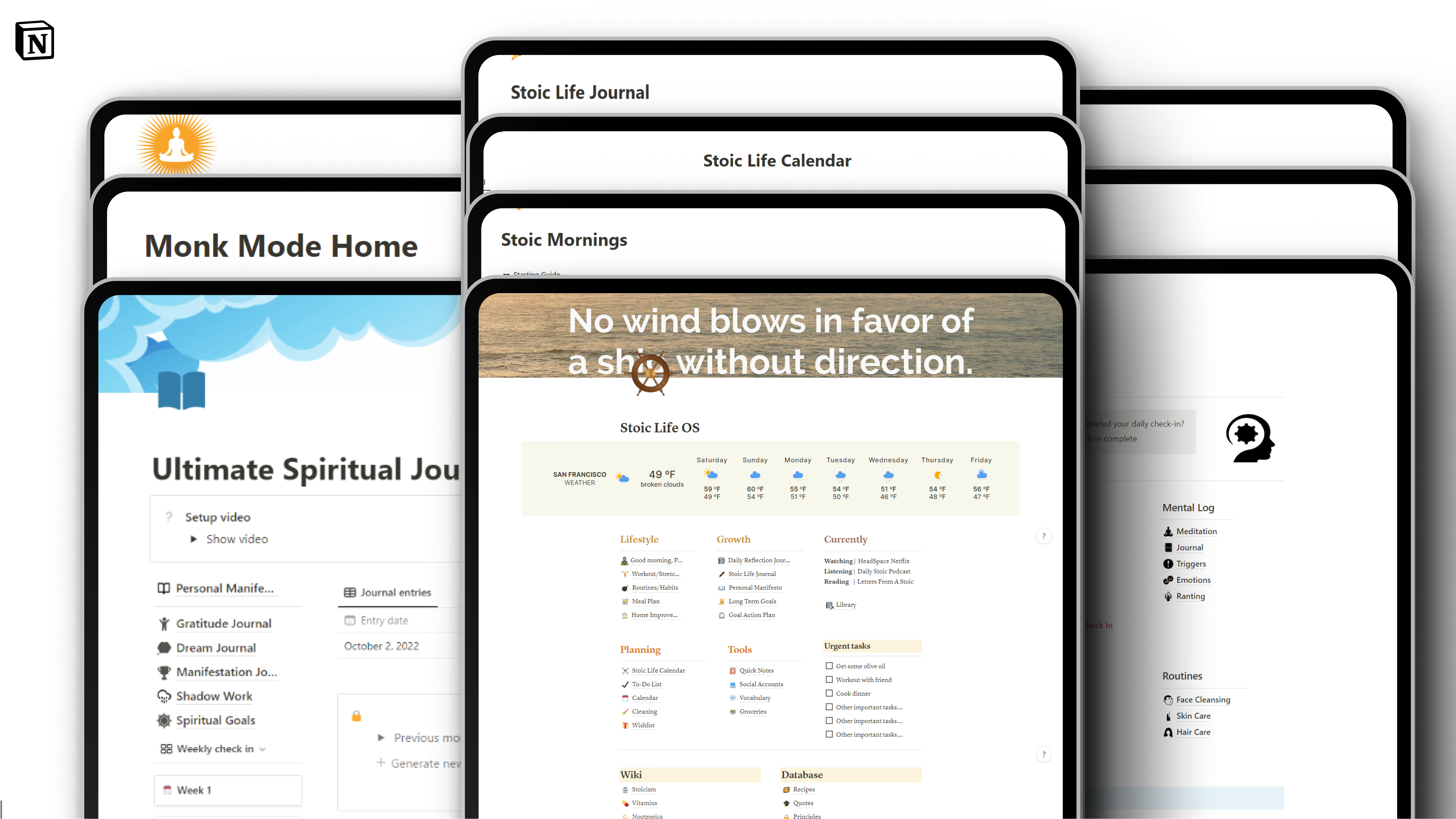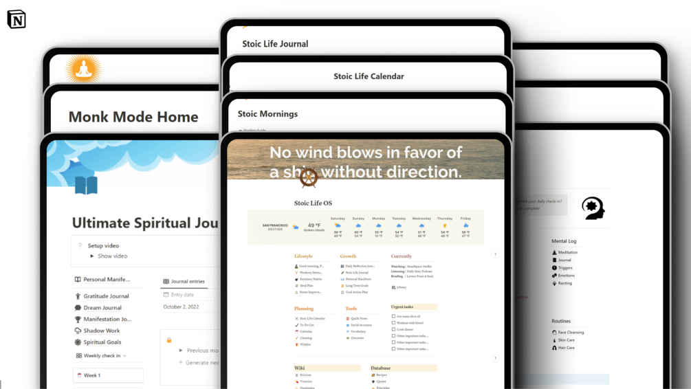 It's for both dedicated health, spiritual or stoic practitioners as well as regular Notion users looking for a bundle of templates to live a more productive, healthy and fulfilled life based modern day self improvement and productivity principles. -