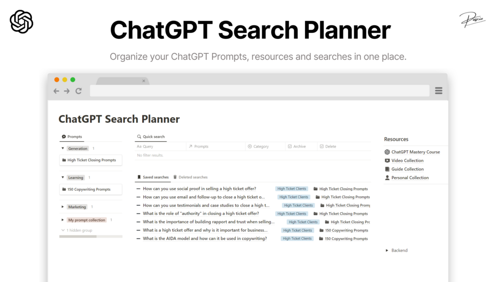 The Ultimate Search Planner to organize and streamline ChatGPT searches, prompts and resources in one place