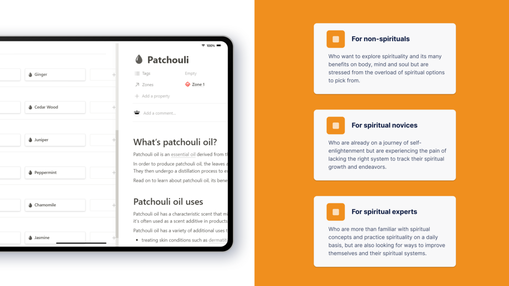 Through Notion, Soul Navigator provides the framework for minimalistic and efficient introspection, soul-searching and spiritual growth and allows you to store all your spiritual resources like crystals, oils, exercises or even habits. -