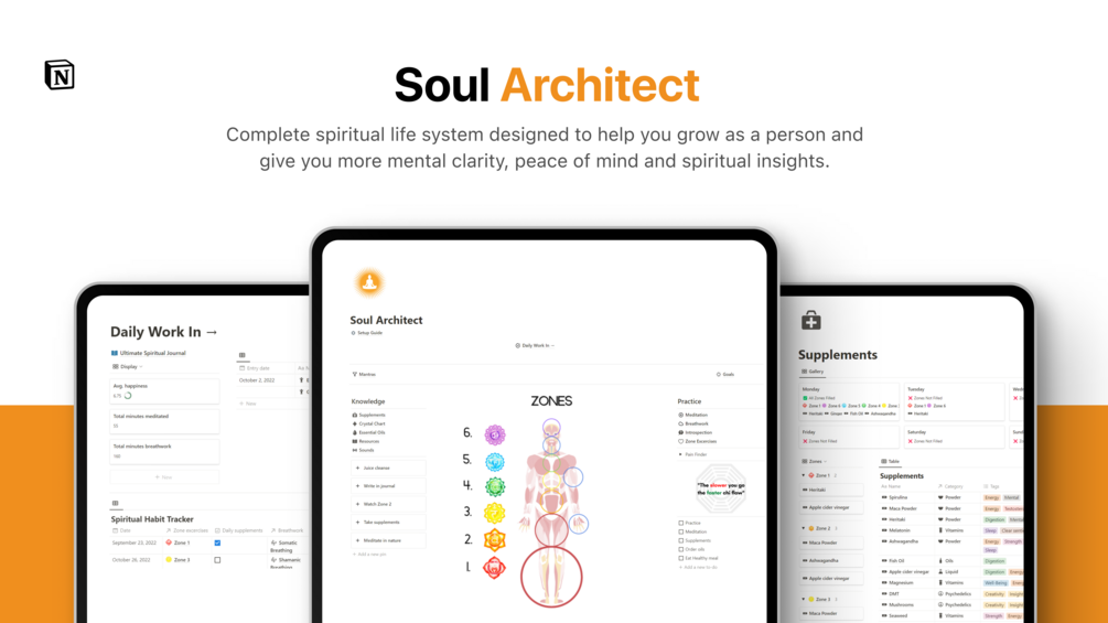 Built with Notion, Soul Navigator is the first of its kind; a complete workspace for any type of spiritual practitioner, from novice to beginner.