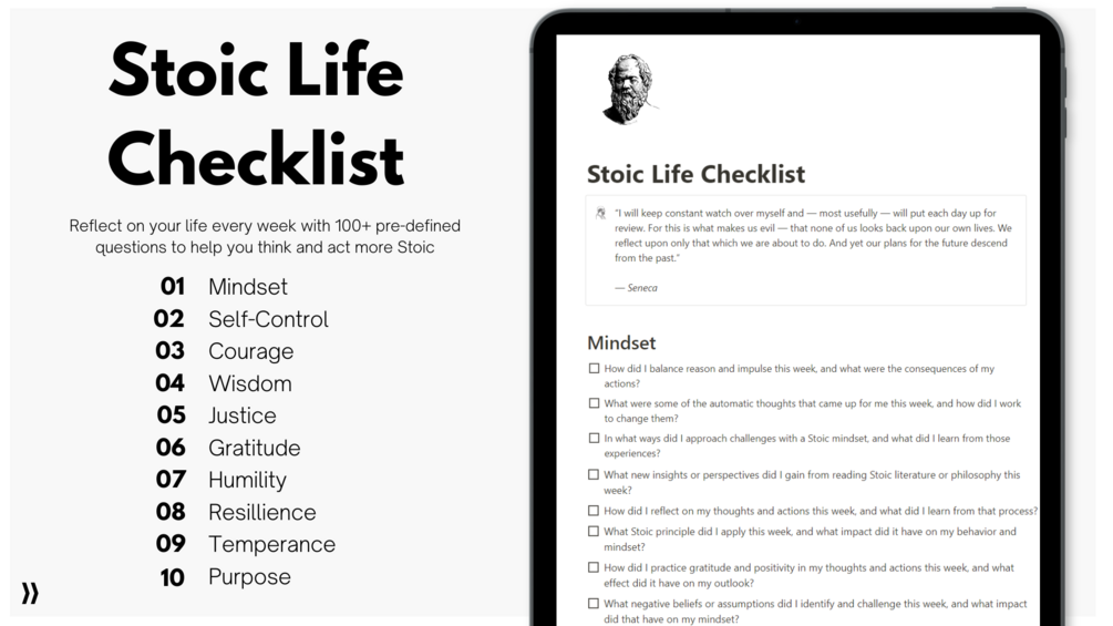 Built in Notion and designed to help you get better results when trying to apply Stoicism in your life.