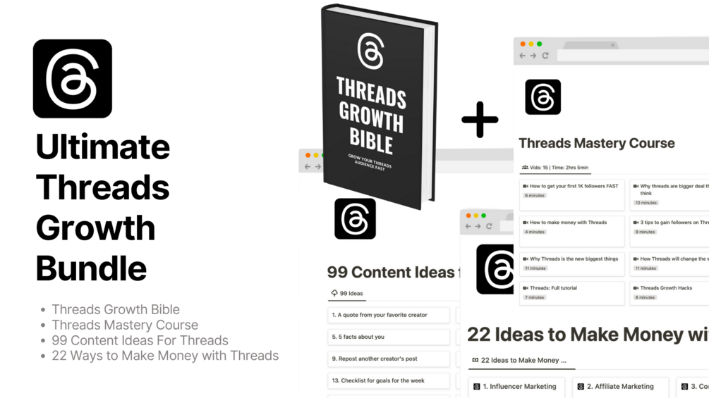 With this bundle, you'll get access to 4 key resources for Threads monetization and growth.