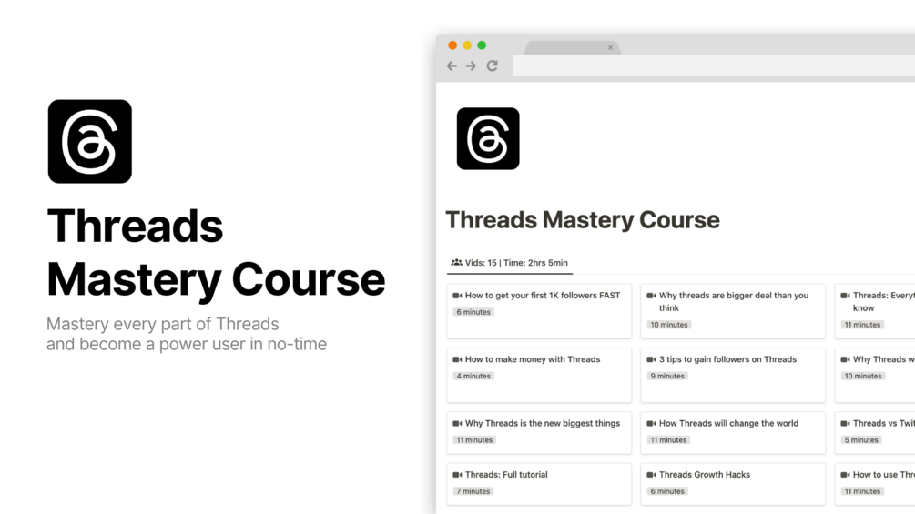 With this course, you'll get 15+ curated YouTube videos with more than 2 hours of video content all curated to give you the skills and knowledge you need to become a master of Threads